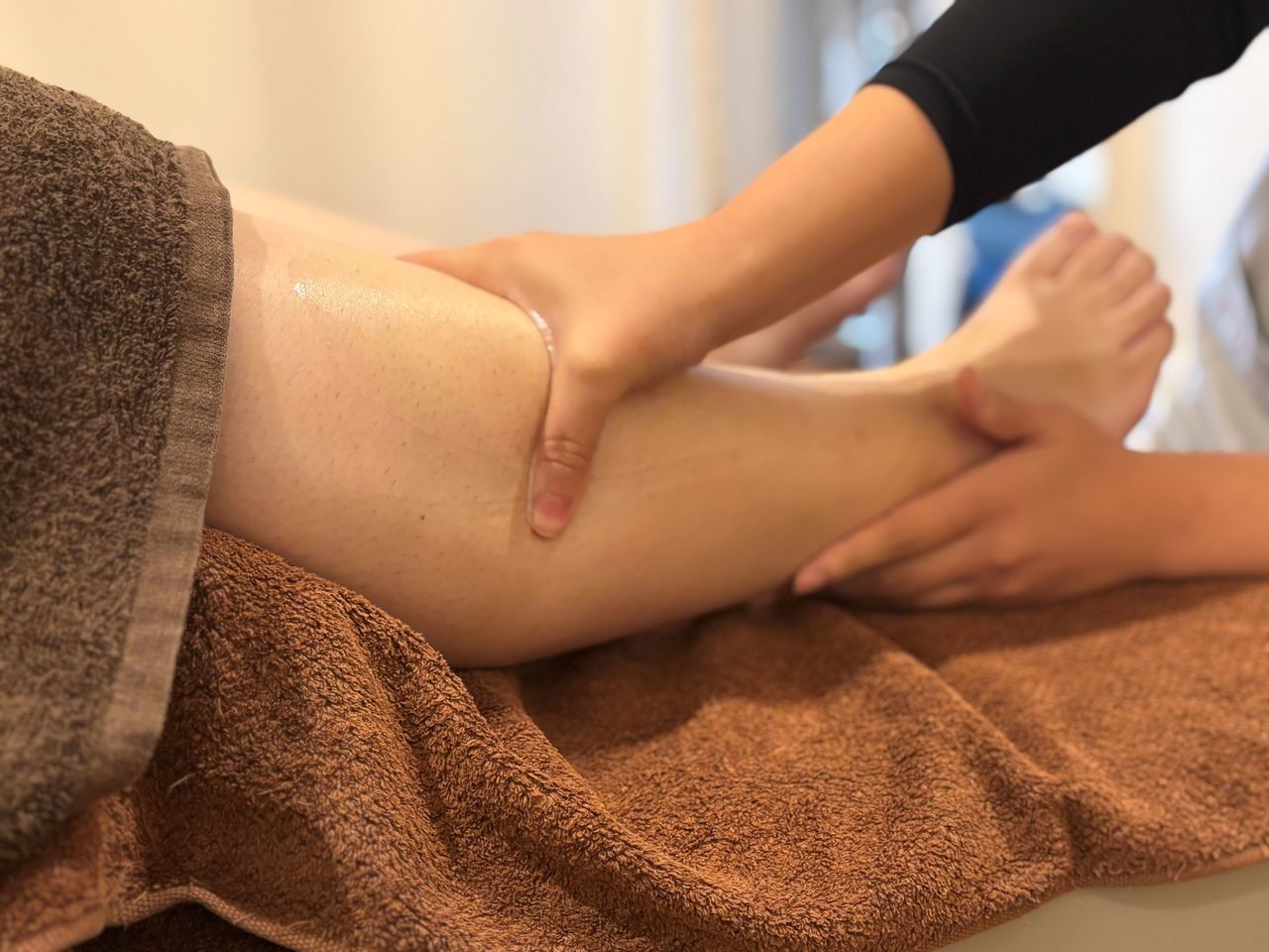 オイルを使用して足の裏~膝下まで血液を流すようにケアしていきます。足の疲れ、浮腫み、足のつりなど足に不安がある方にオススメ!足がスッキリして足の軽さを実感できます。